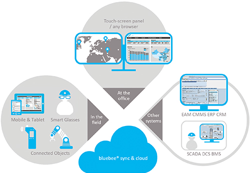 The powerful bluebee® sync platform ensures devices management and data synchronization with bluebee® cloud or any EAM/CMMS.